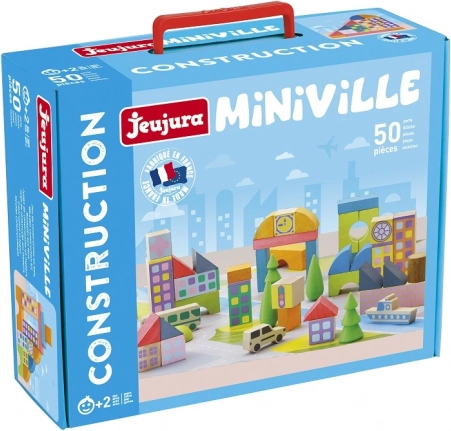 Odkrijte ustvarjalno leseno sestavljanko, ki razvija domišljijo in fino motoriko otrok že od 2. leta dalje. Set vsebuje 50 pisano okrašenih kock, preprosta lesena vozila in igralno podlogo za gradnjo lastnega mesteca. Izdelano v Franciji iz masivnega bukovega in borovega lesa, obdelano le z vodnimi barvami in laki. Pakirano v praktičen kartonski kovček, natisnjen z rastlinskimi barvami. Varni materiali, kakovostna izdelava in zabava za dolge ure.