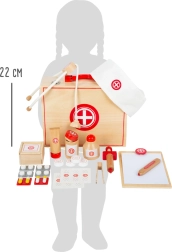 Otroški zdravniški kovček Small Foot je idealna izbira za male zdravnike in zdravnice, ki se želijo opremiti za obiske pri pacientih. Ta kovček vsebuje vse pomembne medicinske pripomočke, ki so v celoti leseni in pakirani v klasični belo-rdeči barvni kombinaciji.