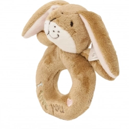 Ropotuljica obroč zajček je zasnovana tako, da pritegne otroško pozornost in jih zabava. Je idealna ne le kot igrača, temveč tudi kot pomirjujoč pripomoček zaradi svojega mehkega materiala in ljubkega videza.