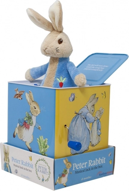 Presenetite svojega otroka s Čarobno škatlico, kjer se po zavrtanju ročice pojavi glava zajčka Petra iz knjige Beatrix Potter. Ta škatlica ne zagotavlja le ur zabave, temveč tudi čudovito dekoracijo sobe.