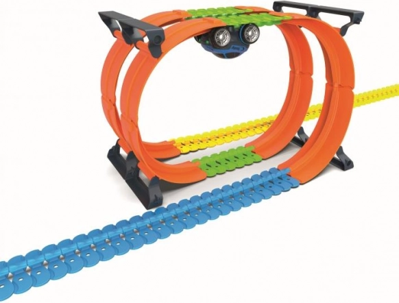 Povežite dve zanki v eno ogromno zanko in avtomobilčkom omogočite visokohitrostni prehod z učinkovitim pospeškom.