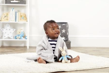 Ta očarljiv komplet, navdihnjen z likom iz zgodb Beatrix Potter, bo navdušil vsakega dojenčka in starše. Mehki plišasti ZAJČEK PETER v ikoničnem modrem plaščku je odličen družabnik za crkljanje in igro, medtem ko pletena odejica iz 100% bombaža poskrbi za toploto in udobje doma in na poti.