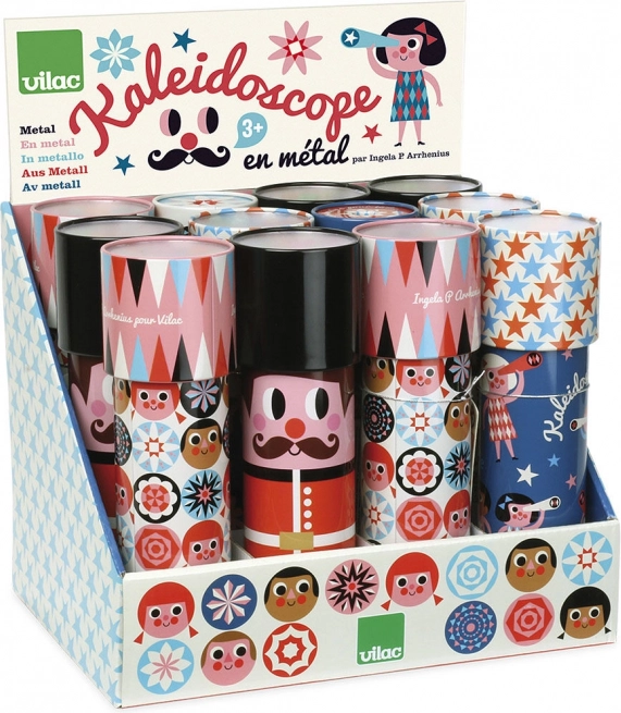 Odkrijte čar barvitih vzorcev s klasičnim kalejdoskopom VILAC ilustratorke Ingele P. Arrhenius. Ta trpežen kovinski kalejdoskop razvija domišljijo ter občutek za barve in oblike. Vsak kos ima edinstven motiv – ob naročilu lahko zaprosite za konkreten dizajn. Spodbuja ustvarjalnost, kakovostna kovinska izdelava in stajliš retro videz razveselijo male in velike raziskovalce.