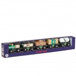 Prisrčen lesen tovorni vlak v zeleni barvi znamke Le Toy Van je pripravljen na pustolovščine, polne domišljije. Izdelan je iz trajnostnega lesa, ročno dodelan z netoksičnimi barvami na vodni osnovi in z magnetnimi spojkami za preprosto povezovanje vagonov. Združljiv z večino lesenih vlakovnih prog, razvija motoriko, govor in socialne veščine. Idealen za otroke od 3. leta dalje.
