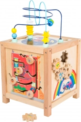 Ta večstranska kocka je idealno orodje za razvoj otrok, saj ponuja pet različnih strani, polnih zanimivih aktivnosti. Z barvnimi liki in prijaznimi motivi kocka pomaga otrokom učiti se in eksperimentirati v varnem okolju.