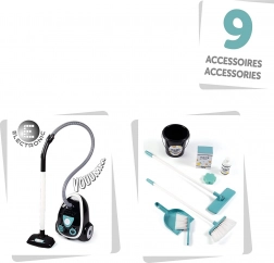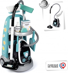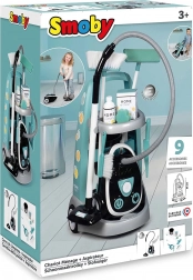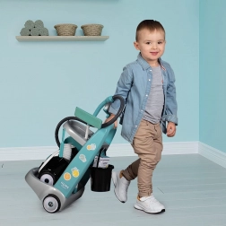 Ta prenosni in praktičen čistilni voziček otrokom zagotavlja vse, kar potrebujejo za »veliko čiščenje«. Zahvaljujoč elektronskemu sesalniku z realističnimi zvoki je igra še bolj prepričljiva in zabavna. Ergonomski ročaj in velika kolesa olajšajo premikanje po celotnem stanovanju, medtem ko odlagalna polica drži čistila in krpice pri roki.