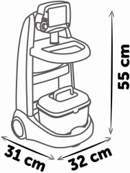 Elektronski zdravniški voziček SMOBY otrokom prinaša realistično igro zdravnika. Zahvaljujoč vgrajenemu elektronskemu modulu EKG s pristnimi zvoki si lahko otroci preizkusijo merjenje življenjskih funkcij in poslušanje utripa. Voziček je lahek, stabilen in enostaven za upravljanje zaradi dveh koles, zato ga brez težav obvladajo tudi mlajši otroci. Vso opremo je mogoče pregledno shraniti v priložen kovček.