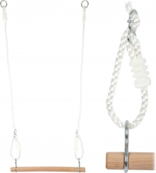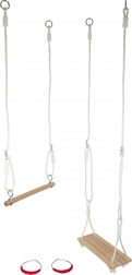 Zahvaljujoč odpornim sintetičnim vrvem z vrvno osmico nastavite optimalno višino za vsakega otroka. Dva kompleta vrvi omogočata, da sta dve komponenti hkrati obešeni in v uporabi. Preprost obešni sistem in robustna kombinacija lesa, kovine in kakovostnih plastik zagotavljata varno in stabilno uporabo.