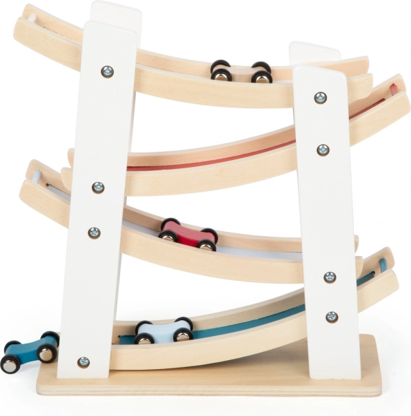 Ta čudovita lesena dirkalna steza je idealna za male motoriste. Zahvaljujoč štirim avtomobilčkom, ki se lahko strmo spuščajo po rampi, je igra polna dinamike in zabave. Izdelana je iz kakovostnega naravnega lesa v kombinaciji z barvnimi poudarki, ponuja estetski videz in hkrati podpira razvoj otrokove motorike.