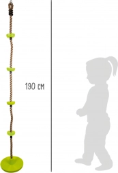 Kombinacija plezalne vrvi z udobnim sedalnim diskom prinaša dvojno mero zabave. Enostavna namestitev zahvaljujoč priloženemu obešalnemu očesu.