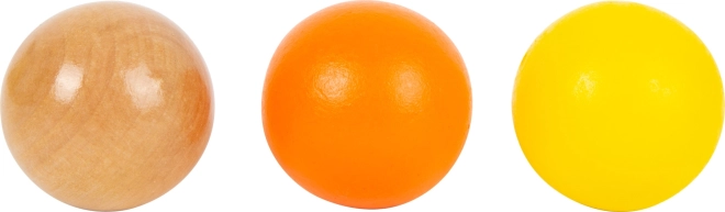 Tri gladke lesene krogle v privlačnih barvah spodbujajo fino motoriko in varen oprijem brez tveganja zaužitja.