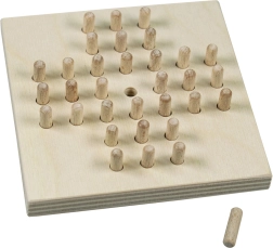 Klasčni leseni solitaire znamke Detoa je brezčasna logična igra za enega igralca, ki odlično razvija logično razmišljanje, potrpežljivost in zbranost. Cilj je preskakovati zatiče tako, da na plošči ostane samo eden. Izdelano v Češki republiki iz kakovostnega lesa.