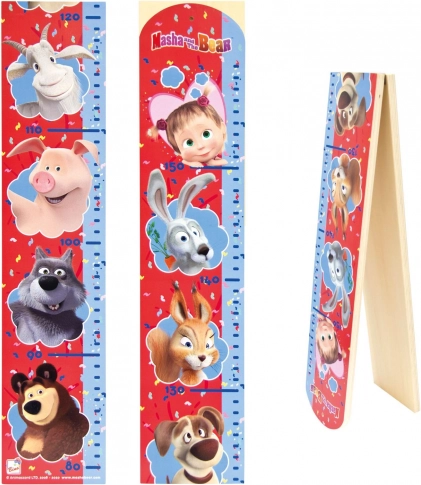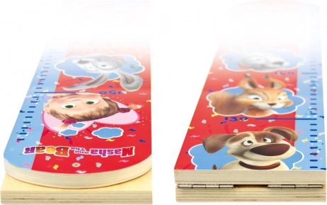 Lesen (MDF) rastni meter z veselimi ilustracijami iz serije Maša in medved se odlično poda v vsako otroško sobo. Tiskana merilna lestvica omogoča pregledno beleženje rasti od 80 do 160 cm, zato boste imeli čudovit spomin na otroštvo.
