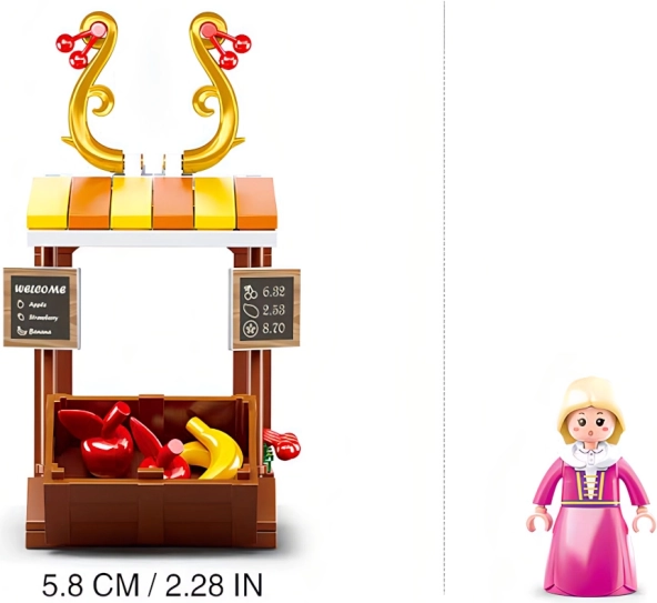 Gradbeni set Sluban iz serije Girl's Dream je idealna izbira za otroke in zagotavlja nešteto ur zabave. Ta komplet vsebuje 99 delov, vključno z figurico, stojničem s sadjem in dekorativno fontano. Izdelan je iz kakovostne in neškodljive ABS plastike, kar zagotavlja dolgo življenjsko dobo. Navodila so jasno razložena, embalaža pa je barvito potiskana, da vabi k odkrivanju.