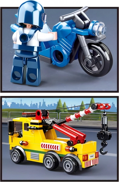 Doživite reševalne akcije na cesti z gradbenim setom Sluban Town vlečni tovornjak z motociklom. S 205 kosi in 2 figurkama z vrtljivimi in nihajnimi deli bodo otroci zlahka zgradili realističen vlečni tovornjak s funkcionalno roko ter uživali ure ustvarjalne zabave.