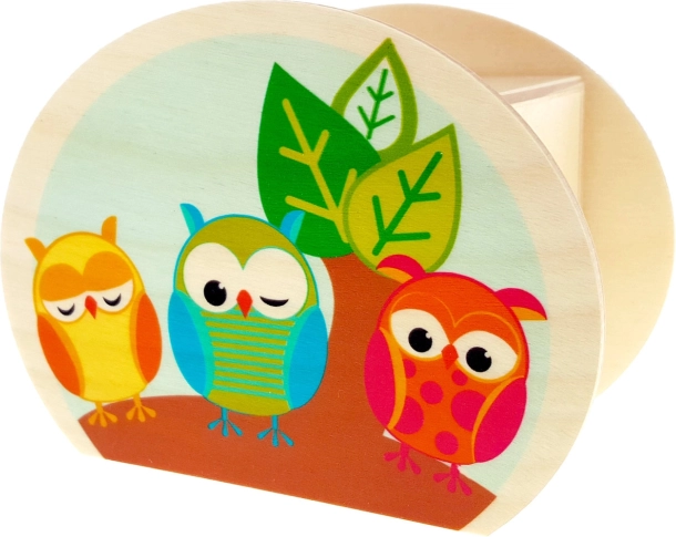 Škatlica ima čudovit dizajn z motivom sovočk, ki pritegne pozornost vsakega otroka. Opremljena je z ključavnico in ključem, kar zagotavlja občutek varnosti in zasebnosti.