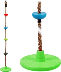 Privoščite otrokom aktivno zabavo na vrtu. Ta barvita plezalna vrv z diski in okroglo gugalnico je odličen dodatek za vsako otroško igrišče. Krepi ravnotežje, koordinacijo in grobo motoriko ter spodbuja gibanje na svežem zraku.