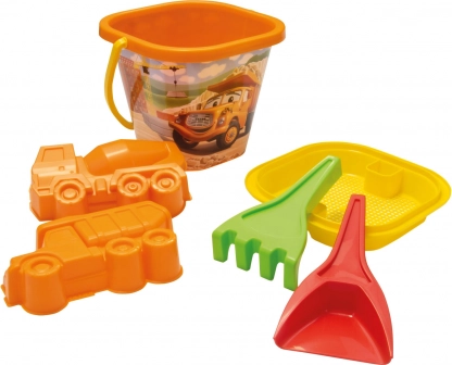 - Vedro, lopatka, grabljice, sito, 2 modelčka (tovornjak, mešalec)