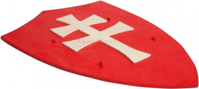 Lesen ščit FAUNA z dvoramenskim križem je trpežen in varen pripomoček za otroške viteške igre. Izdelan je iz kakovostnega lesa, skrbno brušen in ima gladke robove, da je pri uporabi prijeten in varen za otroške roke.