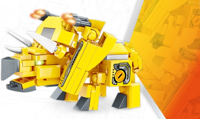 Zgradi robodino in ga preklopi v bojni položaj. Predelljive dele in rogovi poskrbijo za akcijo in zabavo pri vsaki igri.