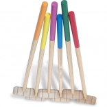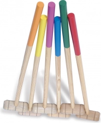 Komplet je izdelan iz kakovostnega bukovega lesa z gladko površino za prijeten oprijem, kovinski obročki zagotavljajo stabilnost na terenu, tekstilna torba z zadrgo pa omogoča enostavno prenašanje in shranjevanje. Kakovostna izdelava v Franciji je zagotovilo natančne obdelave in dolge življenjske dobe.