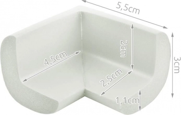 Praktični penasti zaščitniki za vogale v snežno beli barvi ščitijo pred udarci ob ostre robove miz, omaric ali stopnic. Mehka in elastična pena, preprosta namestitev s pomočjo močnega obojestranskega traku ter enostavno vzdrževanje za varnejši dom, zlasti z otroki.