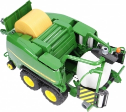 Velik pokrov omogoča enostavno vstavljanje in razkladanje okroglih bal, model pa verno simulira postopek stiskanja in nato ovijanja bale.