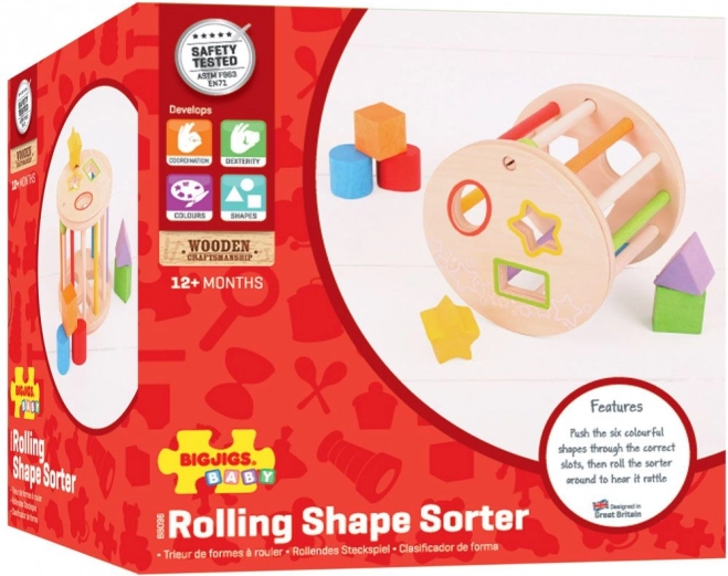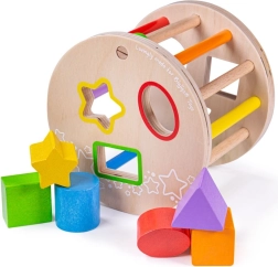 Ta leseni valj z oblikami je odlična izbira za prvo izobraževalno igračo. Barvni geometrijski koščki se vstavljajo v ustrezne odprtine, s čimer otroci vadijo logično razmišljanje, potrpežljivost in natančnost prijema. Pri valjanju po tleh igrača oddaja prijetne klopotajoče zvoke, ki motivirajo k nadaljnjemu raziskovanju.