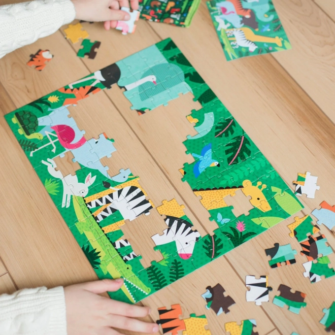 Dve različni džungelski sliki v eni sestavljanki otroke dlje časa pritegneta in ob vsakem sestavljanju ponujata nove izzive.