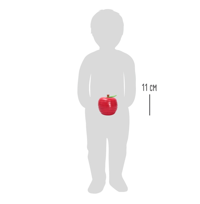 Vzdržljiva lesena izvedba z gladko površino, filcastim listom in živahnimi barvami zagotavlja dolgo življenjsko dobo in privlačen videz. Sestavljeno jabolko postane okras vsake police in odlično darilo za otroke od 3 let.