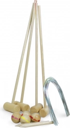 Uživajte v gibanju na prostem, razvoju motorike in ekipni zabavi. Komplet je popoln in pripravljen za igro – dovolj je, da postavite vratca, razdelite kije in lahko začnete nabirati točke.