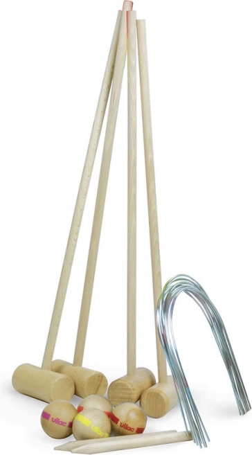 Komplet za kroket VILAC prinaša tradicionalno igro v premium izvedbi. Natančna obdelava iz masivnega lesa zagotavlja trpežnost in dolgo življenjsko dobo, medtem ko praktična priročna torba olajša prenašanje in shranjevanje. Odlično za družine in prijatelje, super izbira za otroke od 4 let dalje.