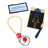Nahrbtnik vsebuje tudi tekstilne maske, ampule, injekcijsko brizgo in razkužilni sprej, kar omogoča odigravanje prizorov z veliko pristnostjo. Prejeta priznanja, kot je ToyAward 2022, potrjujejo njegovo kakovost in vrednost za razvoj otroških veščin.