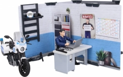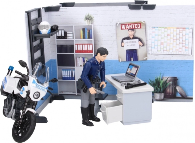 Ta policijska postaja BWORLD Bruder ponuja čudovito priložnost za otroke, da ustvarijo svoje lastne zgodbe in situacije. Policijska postaja služi kot koordinacijski center s pisarniškim delom, kjer lahko policist spremlja in vodi misije. Postaja vsebuje: