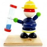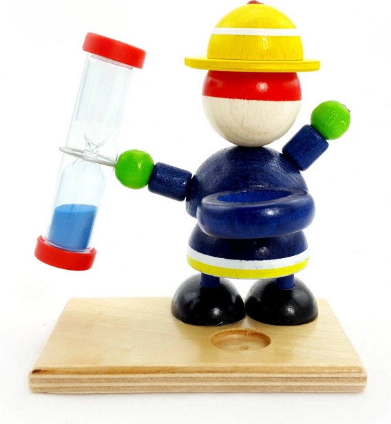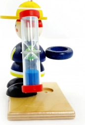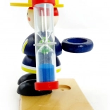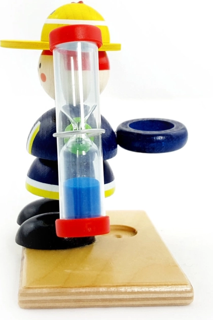 Ta barvita lesena igrača v obliki figure, ki jo drži gasilec, je ne le dekorativna, temveč tudi funkcionalna. Uro lahko uporabite kot izviren časomer s peskom modre barve, kot igriv dodatek v otroški sobi. Ura z dvominutnim pretakanjem je idealna za spodbudo pri ščetkanju zob.