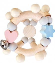 Lesena motorična ropotuljica znamke Hess navduši s pastelnimi barvami in z zvončkom, ki spodbujata domišljijo in izboljšujeta fino motoriko otroka.