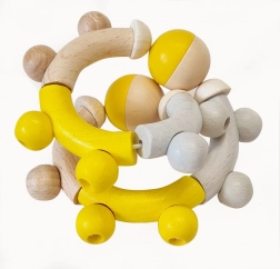 Hess lesena ropotulja v rumeni barvi je idealna za razvoj gibalnih spretnosti vašega otroka. Izdelana je iz visokokakovostnega, okolju prijazno obdelanega lesa in ponuja ustvarjalne možnosti zahvaljujoč osmim delom na elastični vrvici.