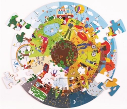 Otroški okrogli talni puzzle podjetja Bigjigs Toys prinašajo edinstven način, kako se otroci lahko spoznajo s sezonskimi spremembami. Vsak kos puzzla je natančno zasnovan, da ustvari celovito 360-stopinjsko sceno, ki predstavlja različne aktivnosti in pokrajine, značilne za pomlad, poletje, jesen in zimo.