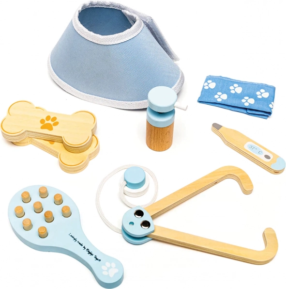 Zaradi kombinacije lesa in tekstila je igrača prijetna na dotik, vzdržljiva in varna. Set je zasnovan tako, da podpira domišljijo, fino motoriko in empatijo pri skrbi za živalske paciente. Odlična izbira za smiselno igro poklicev brez odvečne plastike.