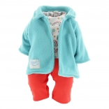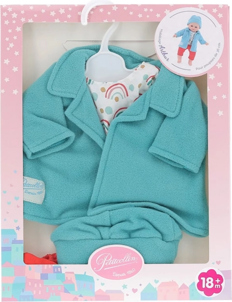 Oblačilo Petitcollin Arthur vsako punčko velikosti 36 cm spremeni v elegantnega spremljevalca za igro. Komplet združuje turkizen flis pulover, veselo vzorčasto bluzo, rdeče kratke hlače in ujemajočo kapico – skupaj ustvarjajo privlačen in udoben outfit za vsakodnevne dogodivščine.