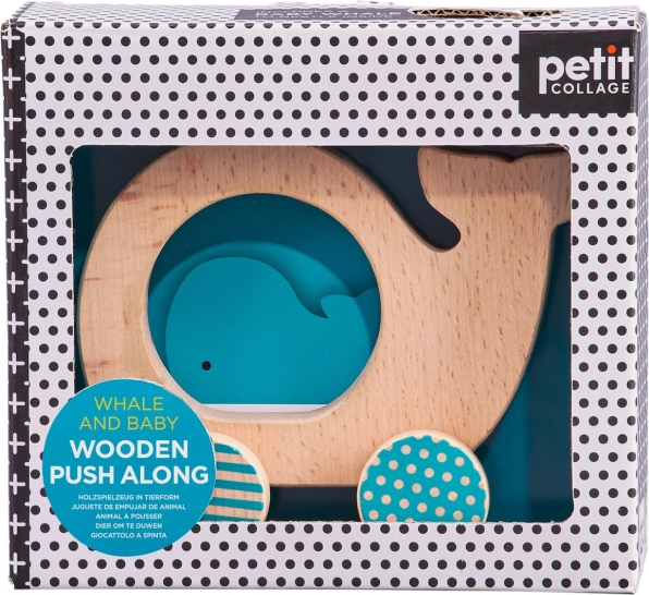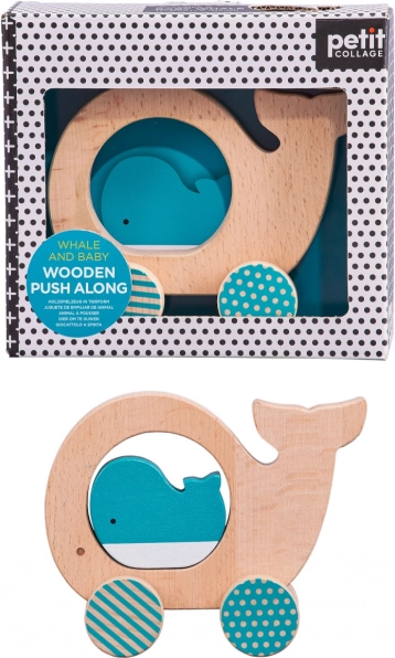 Ta stilska in varna lesena igrača otrokom prinaša veselje do gibanja in odkrivanja. Zaobljene oblike se odlično prilegajo malim rokam, na sredini kitovega telesa je odprtina s prosto nameščeno figurico mladiča, ki spodbuja interaktivno igro ter izboljšuje koordinacijo oko–roka.