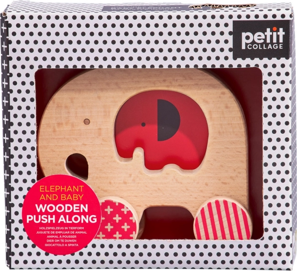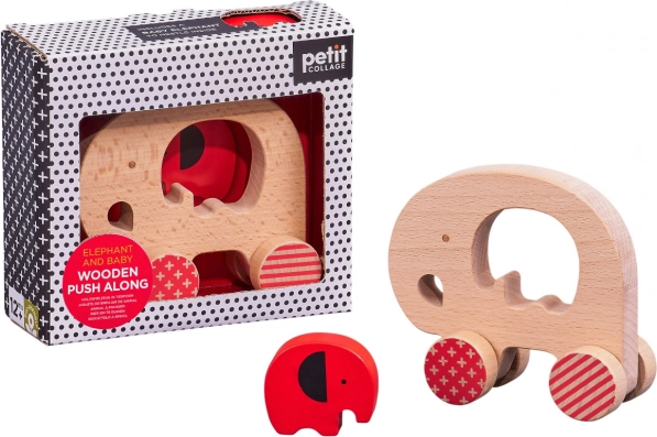 Prisrčen leseni slon z mladičkom znamke PETIT COLLAGE združuje vlečno igračo in preprosto sestavljanko. Narejen je iz 100 % FSC lesa, prebarvan z netoksičnimi barvami na vodni osnovi in dobavljen v darilni embalaži. Spodbuja fino motoriko, koordinacijo in domišljijo otrok že od 12 mesecev dalje.