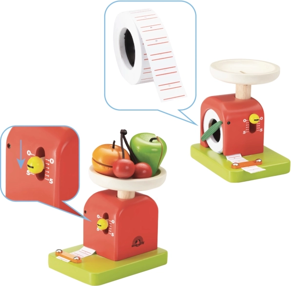 Papirnati rolic omogoča zapisovanje rezultatov tehtanja in “računov”. Spodbuja ustvarjalnost ter vadi pisanje in računanje.