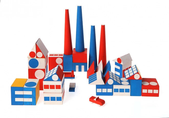Ta skrbno izdelana sestavljanka iz masivnega lesa temelji na zgodovinskem načrtu Ladislava Sutnarja iz leta 1921. Kosi v primarnih barvah in čistih geometrijskih oblikah omogočajo gradnjo hiš, stolpov in celih ulic – od preprostih kompozicij do dovršenega mesta. Otroci razvijajo spretnost prstov, logično mišljenje in domišljijo, odrasli pa cenijo brezčasno estetiko in dediščino funkcionalističnega oblikovanja.