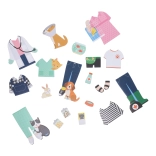 Vsebuje več kot 25 magnetnih koščkov za oblačenje in igro vlog.