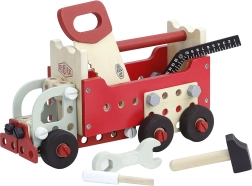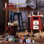 Iščete igračo, ki bo razvijala motorične veščine in ustvarjalno razmišljanje vaših otrok? Dvostranski kovček z orodjem Vilac je prava izbira! Ta set vsebuje kar 96 delov, ki omogočajo sestavljanje modularnih konstrukcij, kot so tovorni avto, žerjav ali celo robot. Oblikovanje ateljeja Vilac zagotavlja kakovostno izdelavo in privlačen vintage videz. Otroci se bodo lahko preizkusili v vlogi malega mojstra in popestrili svoje igralno kraljestvo.