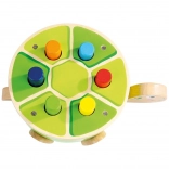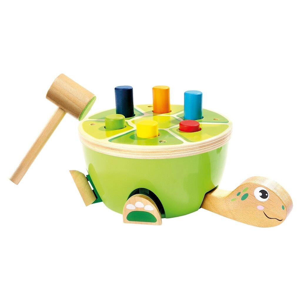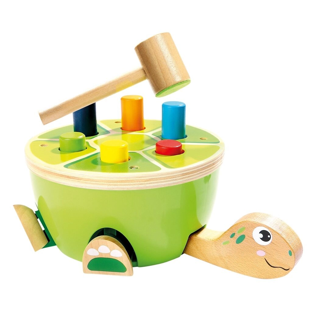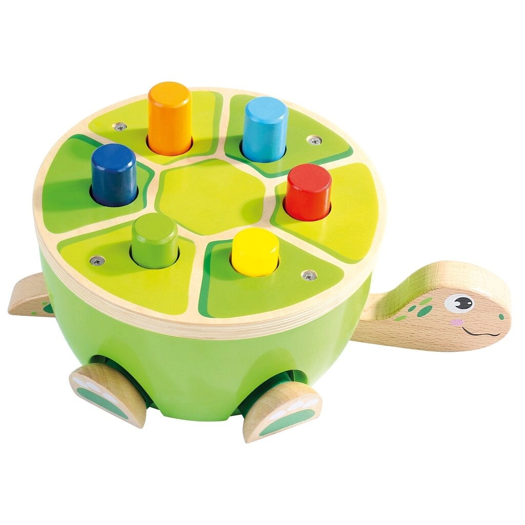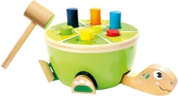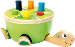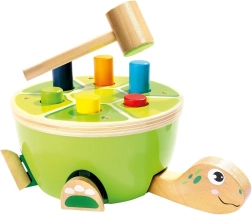 To želvino tolkalo Bino je idealna izbira za prve motorične igre. Otroci s pomočjo lesenega kladivca z mehkim filcnim premazom varno zabijajo barvne klinčke v oklep. Pri igri se naravno razvijajo fine motorične spretnosti, koordinacija oko–roka in zbranost, veselo oblikovanje pa ohranja pozornost za dolgo časa.