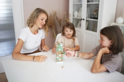 Igro obvladajo otroci že od 3. leta in jo lahko prilagodite starosti ter spretnostim igralcev – igrajte klasično ali dodajte leseno kocko za nove izzive. Embalaža 2-v-1 dodatno olajša gradnjo in varno shranjevanje koščkov.