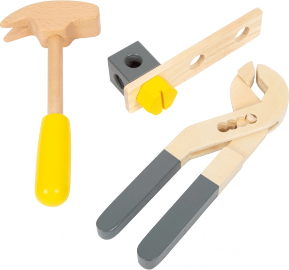 Kladivo, ključ, izvijač, nastavljivi ključ in primež – vse iz trpežnega lesa. Otroci na igriv način preizkusijo osnovne “rokodelske” spretnosti.