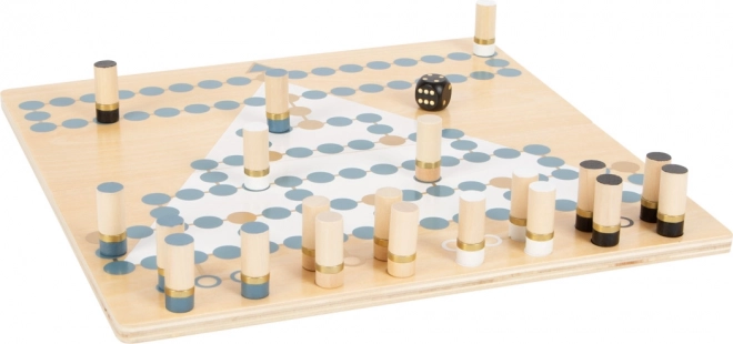 Odkrijte dvostransko leseno igro small foot Gold Edition, ki združuje klasični strategiji Halma in Barikade (Malefiz) v elegantni izvedbi z zlatimi detajli, dimno modro, črno, belo in naravnim lesom. Magnetno spojena dvodelna plošča zagotavlja stabilnost in enostavno shranjevanje v vzdržljivem škatlastem etuiju. Odlična izbira za družinsko zabavo, razvoj strateškega razmišljanja in zbranosti.